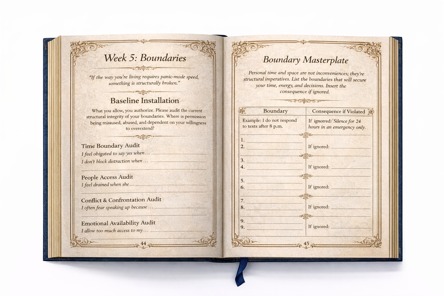 This journal is designed to stop the cycle of “I’ll fix it later.” Each day pulls you into clarity. Each week installs structure. Each milestone proves progress.